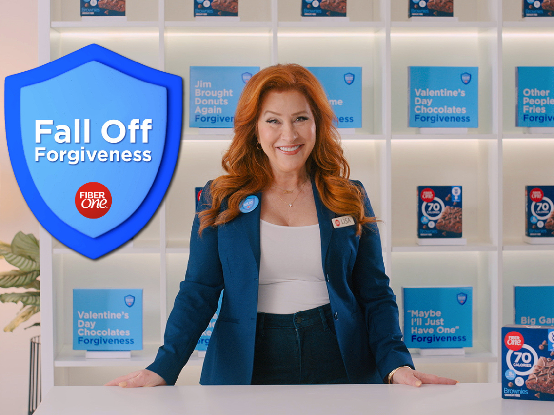 To demonstrate “Fall Off Forgiveness” in action, Fiber One is partnering with actress and comedian Lisa Ann Walter to spoof insurance commercials, where she walks through various “fall off” scenes—like ignoring the celery at a tailgating party and being tempted by a birthday cake—as an empathetic insurance representative.